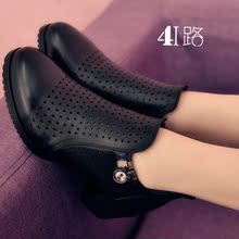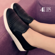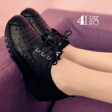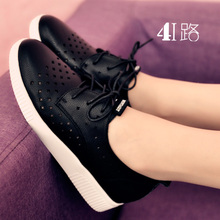 2017春季新款平底大码单鞋女40-43系带镂空透气女鞋41-43休闲鞋潮