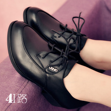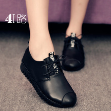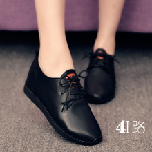 2017春新款大码单鞋女41-43平底鞋时尚系带软底厚底百搭女鞋40-43