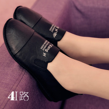 41路春秋新款真皮大码单鞋女40-43平底平跟时尚套脚休闲女鞋41-43
