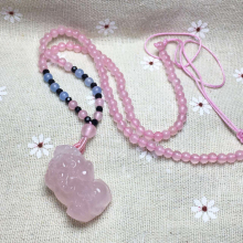 天然开光粉晶貔貅吊坠项链 招财辟邪旺爱情招桃花粉色水晶女饰品