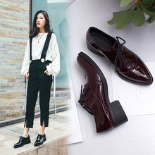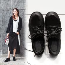 2017年春季新款雕花牛漆皮真皮布洛克鞋女真皮单鞋系带尖头方跟