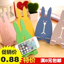韩国创意越狱兔手机座可爱通用床头木质懒人手机支架桌面托架