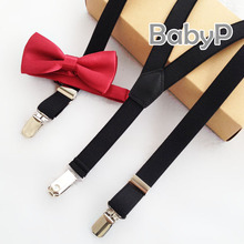儿童花童三夹背带领结套装 男童宝宝演出表演领结套装 礼盒装