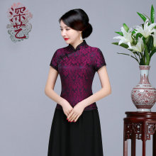 深艺新款真丝旗袍上衣夏短袖改良时尚中式民国风唐装女上衣妈妈装