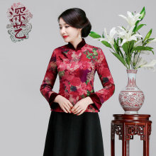 深艺桑蚕丝真丝改良旗袍上衣春秋装时尚修身中式唐装女上衣妈妈装