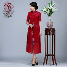 深艺旗袍2017春装桑蚕丝真丝奥黛越南旗袍改良复古时尚奥黛连衣裙