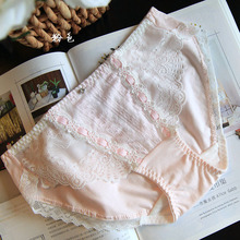 日单中高腰女士内裤 纯棉蝴蝶结性感蕾丝边透气舒适全棉三角裤