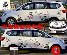 个性汽车装饰贴纸拉花青花瓷牡丹花车头前引擎盖车身两侧整车贴膜