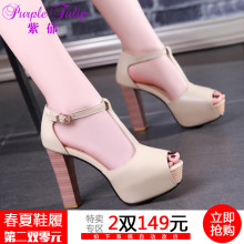 紫郁春季女鞋欧美新款粗跟高跟鞋高跟凉鞋厚底鱼嘴鞋高跟鞋