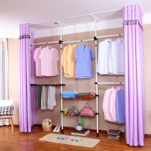 韩式家具居家组装大衣架折叠简易全钢架布套置落地衣帽间柜收纳