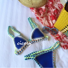 2017新款民族波西米亚度假手工针织弹力氯丁橡胶欧美三角比基尼