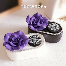 兔子妞妞.镶钻隐形眼镜盒蔷薇花美瞳盒伴侣双联盒蝴蝶结迷你套装