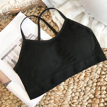 箱根木子2017春新款韩版百搭后背交叉短款吊带带胸垫纯色打底抹胸