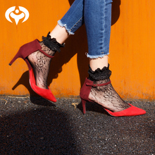 晶滢 2017春夏季新款 女丝袜蕾丝花边四季 时尚网袜 短袜