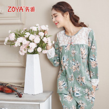 佐雅韩版纯棉夹棉睡衣女士冬季加厚大码可爱中长款套装家居服春秋