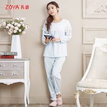 韩版春季睡衣女士长袖纯棉可爱甜美蕾丝宫廷公主风家居服套装春秋