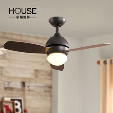 豪斯美式乡村田园复古餐厅书房LED木叶静音风扇灯 儿童风扇灯