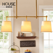 豪斯全铜田园乡村简约厨房吧台餐厅餐桌三头灯具 美式全铜吊灯