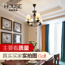 豪斯灯饰铜加铁艺美式吊灯简约客厅餐厅书房卧室美式乡村灯具