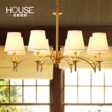 豪斯全铜田园风格客厅餐厅卧室书房布艺灯罩灯饰 美式全铜吊灯