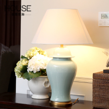 豪斯景德镇田园新中式书房卧室床头柜裂纹台灯 美式陶瓷大台灯