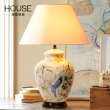 豪斯景德镇田园乡村卧室床头柜新中式裂纹陶瓷台灯 美式花鸟台灯