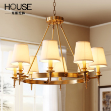 豪斯全铜田园乡村北欧简约客厅餐厅卧室布灯罩灯具 美式全铜吊灯