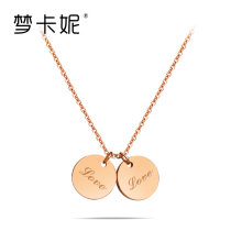 梦卡妮韩版 新款双圆片字母项链 气质玫瑰金色防过敏项链 可刻字