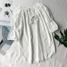 华丽维多利亚风格 十分耗工的复古白色宽松系带衬衫