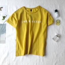 2017夏季新款韩版字母麻料开叉短袖T恤百搭冰丝圆领短款上衣女