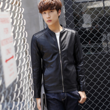 2016秋季男士外套韩版立领夹克衫修身青少年日系机车皮衣男潮学生