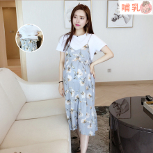 孕妇春装哺乳装连衣裙中长款短袖碎花孕妇裙韩版夏季喂奶裙两件套