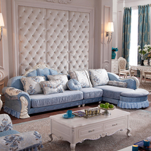 欧式沙发布艺转角组合 地中海小户型美式客厅雕花可拆洗简欧沙发