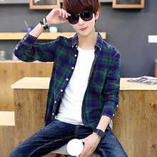 青少年秋季长袖格子衬衫男上衣韩版休闲男士衬衣学生修身寸衫外套