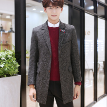 秋季男士风衣中长款西装呢大衣男雪花毛呢外套修身呢子帅气男韩版