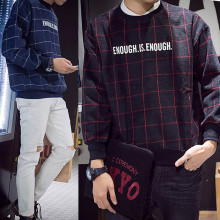 2017春季新款男士卫衣外套韩版潮流格子青少年薄呢子套头上衣服男