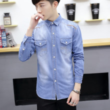 牛仔衬衣衬衫男长袖潮流男装青少年学生韩版修身百搭休闲男士寸衫