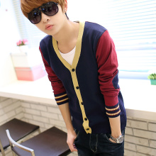 男士春秋装针织衫假两件套开衫外套长袖韩版青少年毛衣薄款线衫男