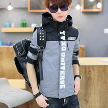 2016春秋日系新款男士连帽修身夹克衫韩版青少年休闲外套男加大码
