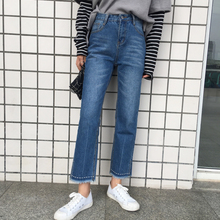 2016冬季新款简约直筒宽松显瘦毛边牛仔裤韩国高腰九分裤子女学生