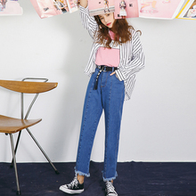 B02春宽松哈伦裤小脚牛仔裤女长裤9九分哈伦学生牛仔浅色休闲裤韩