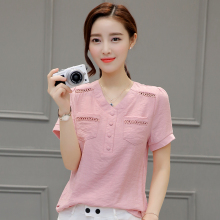 亚麻女装夏装夏天2017新款潮棉麻t恤女短袖短款麻料上衣衬衫文艺