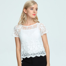 女装蕾丝短袖上衣甜美百搭小衫 夏新款显瘦水溶花镂空蕾丝衫