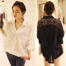 胖mm春秋新款衬衣宽松加大码女装显瘦拼接蕾丝胖妹妹长袖衬衫上衣