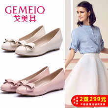 戈美其2017春季新款坡跟单鞋工作鞋女皮鞋职业浅口高跟软底女鞋潮