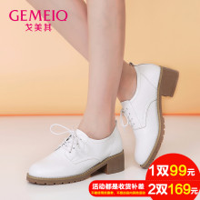 戈美其2017春季新款深口鞋子女休闲鞋系带小皮鞋高跟鞋粗跟单鞋潮