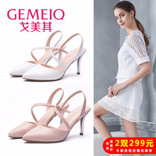 戈美其2017夏季新款时尚中跟中空后空尖头细跟高跟单鞋凉鞋女鞋子