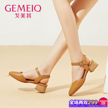 戈美其2017夏季新款时尚一字扣高跟鞋通勤性感粗跟女鞋漆皮凉鞋子