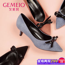 戈美其2017春季新款浅口高跟鞋绒面通勤蝴蝶结单鞋尖头优雅女鞋子