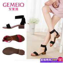 戈美其夏季新款韩版露趾中跟金属装饰时装女凉鞋波西米亚平底女鞋